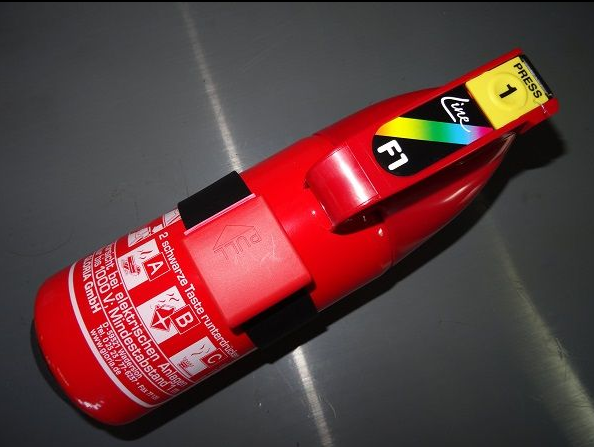 Fire extinguisher for cars. 1 kg with bracket. Testable and refillable. Very easy one-hand operation. High extinguishing power. With crash-tested bracket. Shut-off extinguishing agent jet. Should not be missing in any car!!!