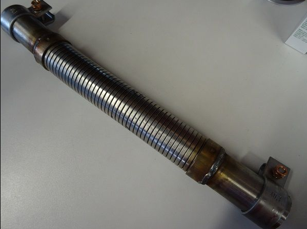 Flexrohr aus Edelstahl, zwischen den Hosenrohren der Auspuffanlage verbaut. Sehr passgenaue Nachfertigung. Inkl. 2 Edelstahlschellen.