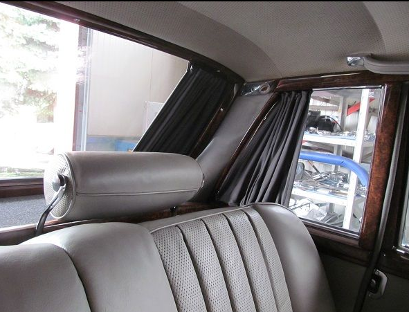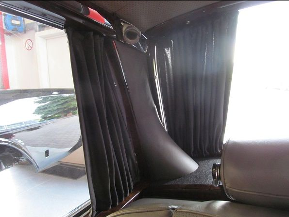4-er Satz Vorhänge für Mercedes 600 W 100. Farbe 109 Mausgrau. Andere Farben auf Anfrage. Set beinhaltet alle 4 Vorhänge für die Heck- und hinteren Seitenscheiben des 600 inkl. Befestigungshaken. Lieferzeit ca. 2 Wochen.