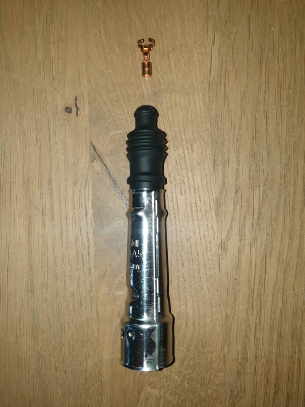 Zündkerzenstecker mit grimp Klammer zum Einschrauben.